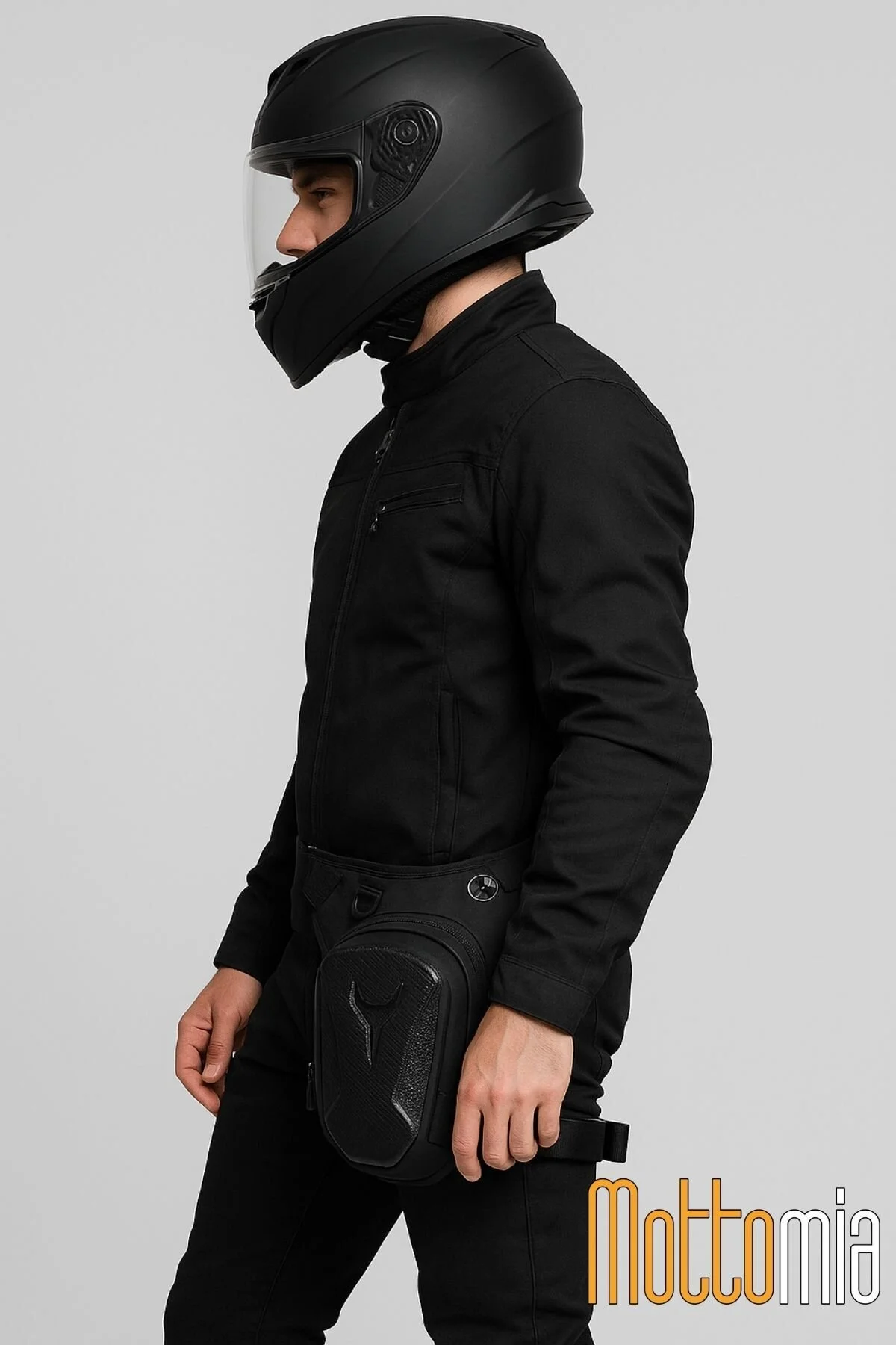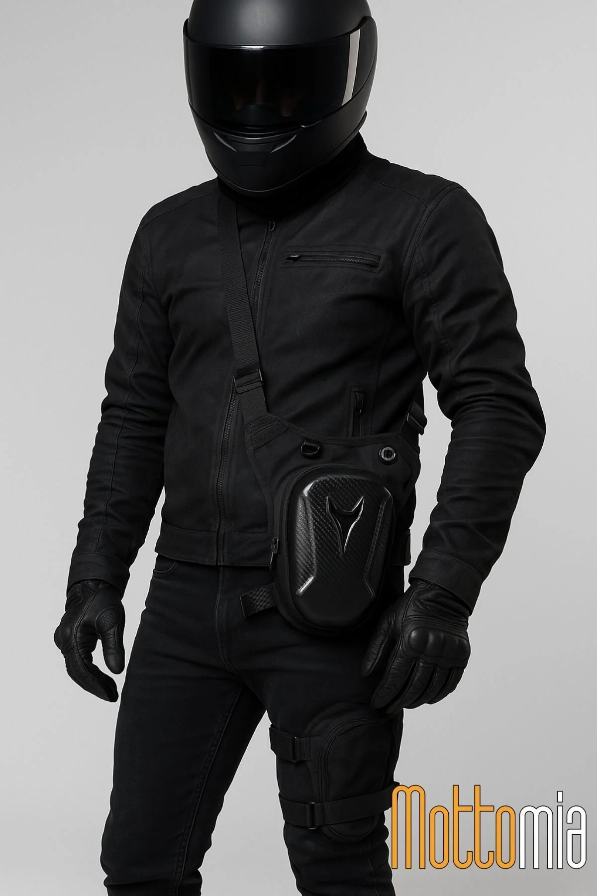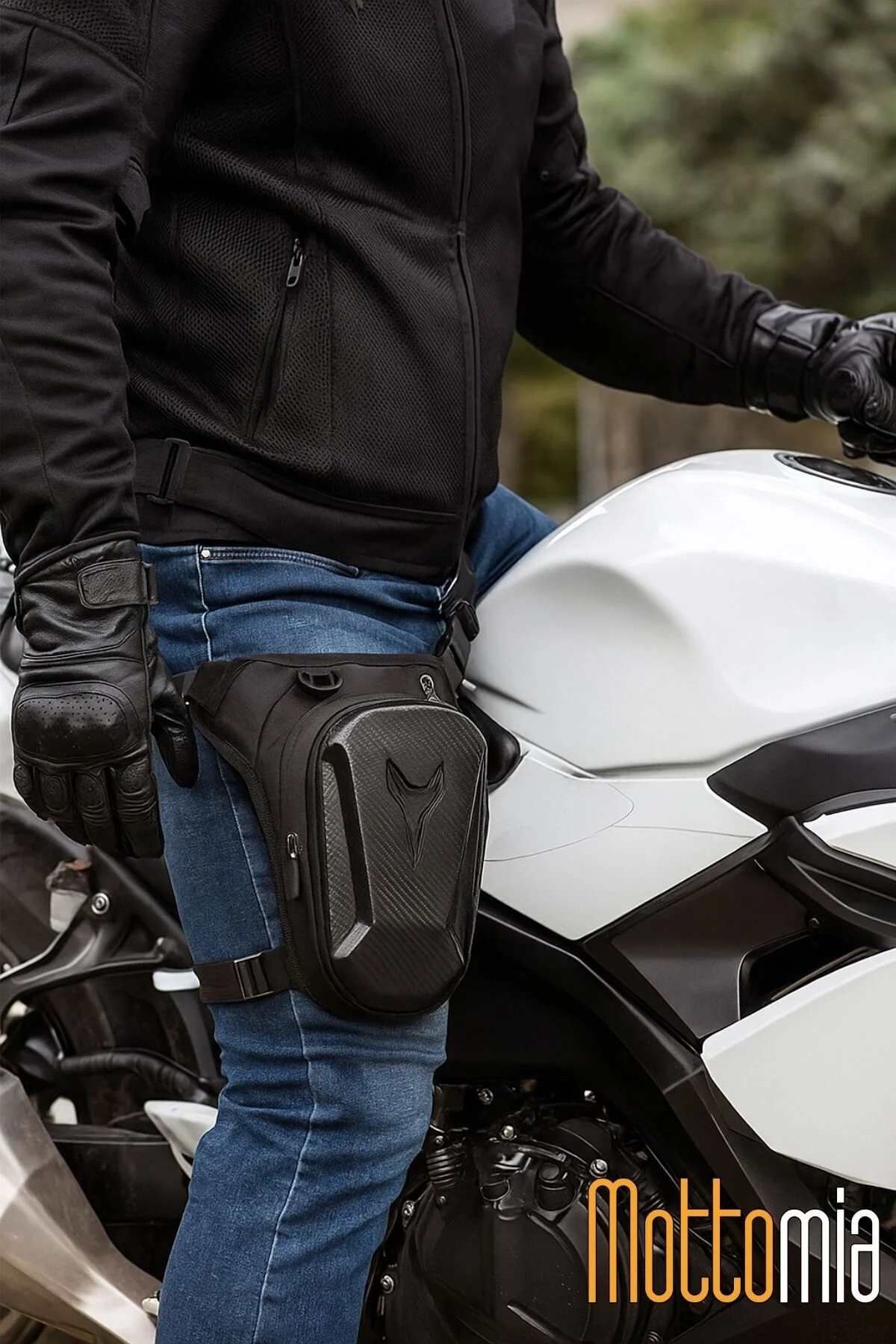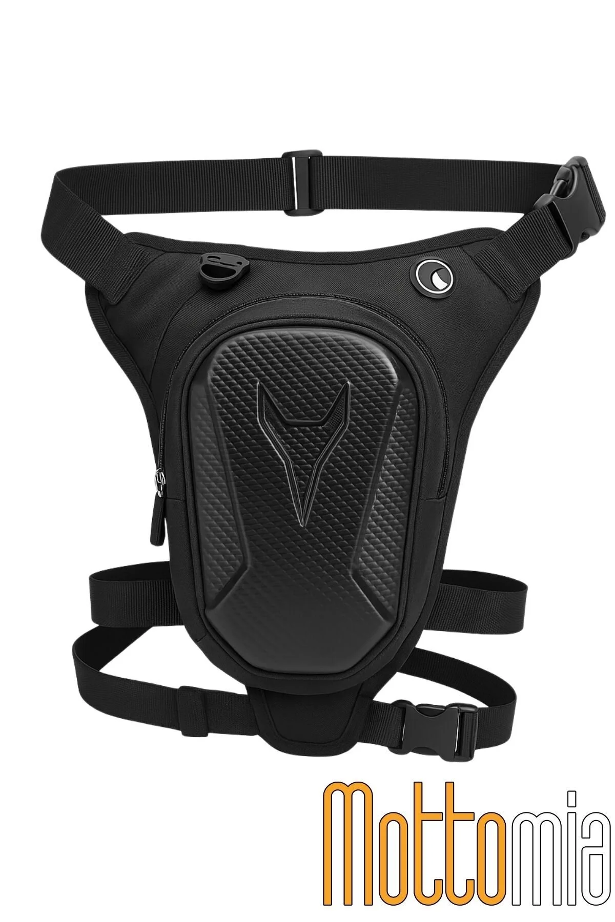 Motosiklet Bacak Çantası – Reflektörlü Karbon Detaylı Su Geçirmez Sert Kabuklu – Siyah Koruyucu Model
